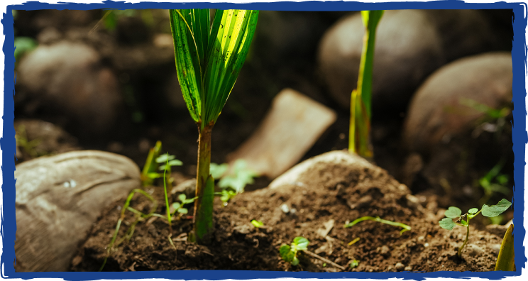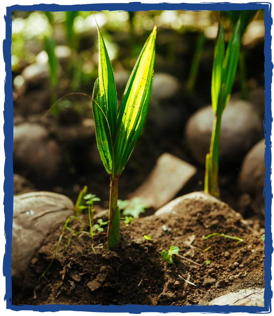 4. Once the seedling sprouts are two to three feet high, they are ready to be replanted fully. When planted with our seedling partners, the seedlings have about a 90 percent germination rate.